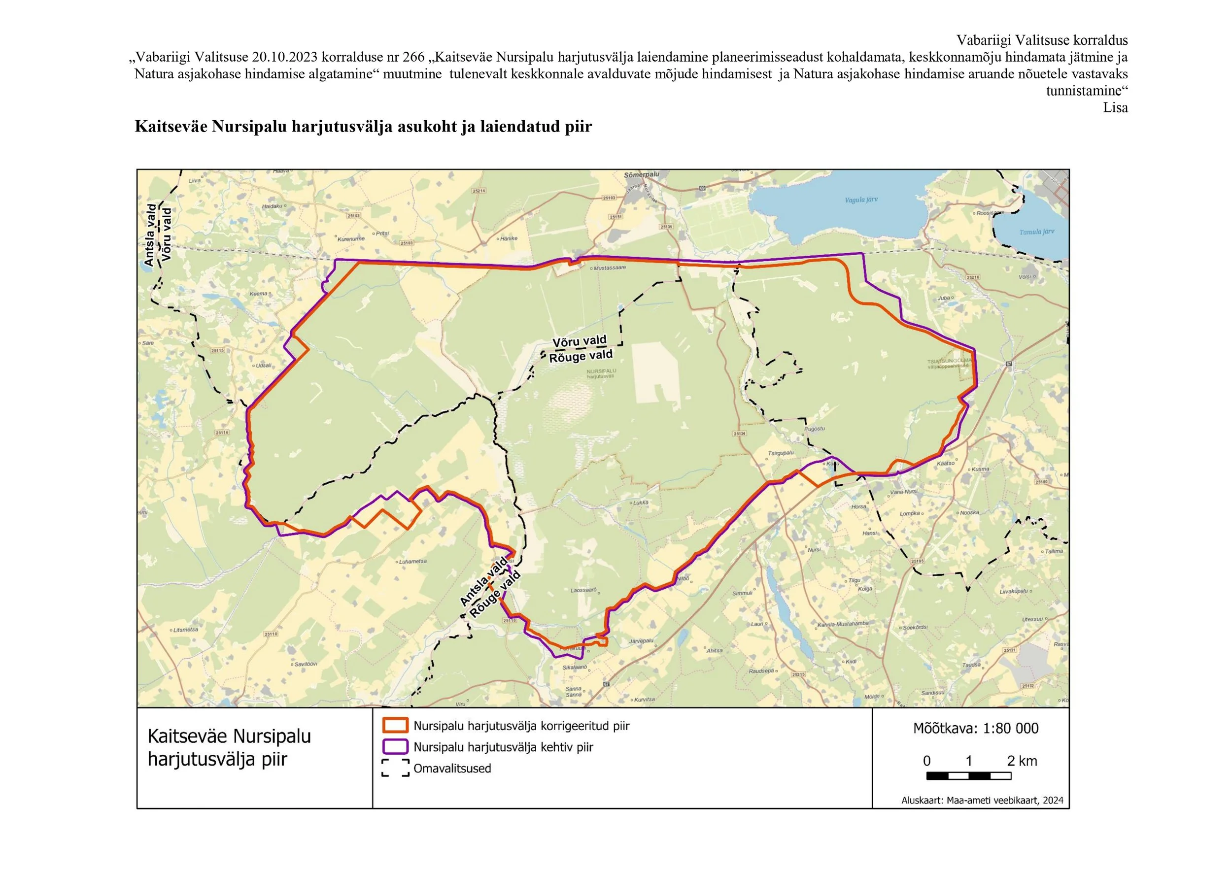 Avalikusele väljapandud eelnõu kaart koos korrigeeritud harjutusväljaku välispiiriga.